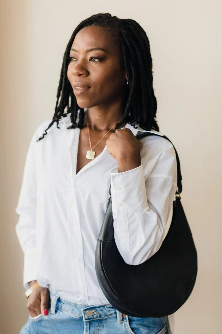 A classic round shoulder bag with beautiful details. Designed to be worn on your shoulder with two strap lengths to accommodate outerwear and comfort.
