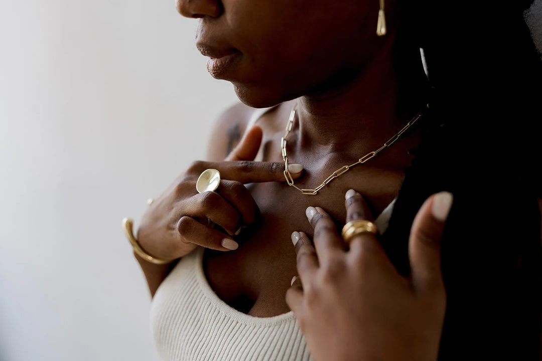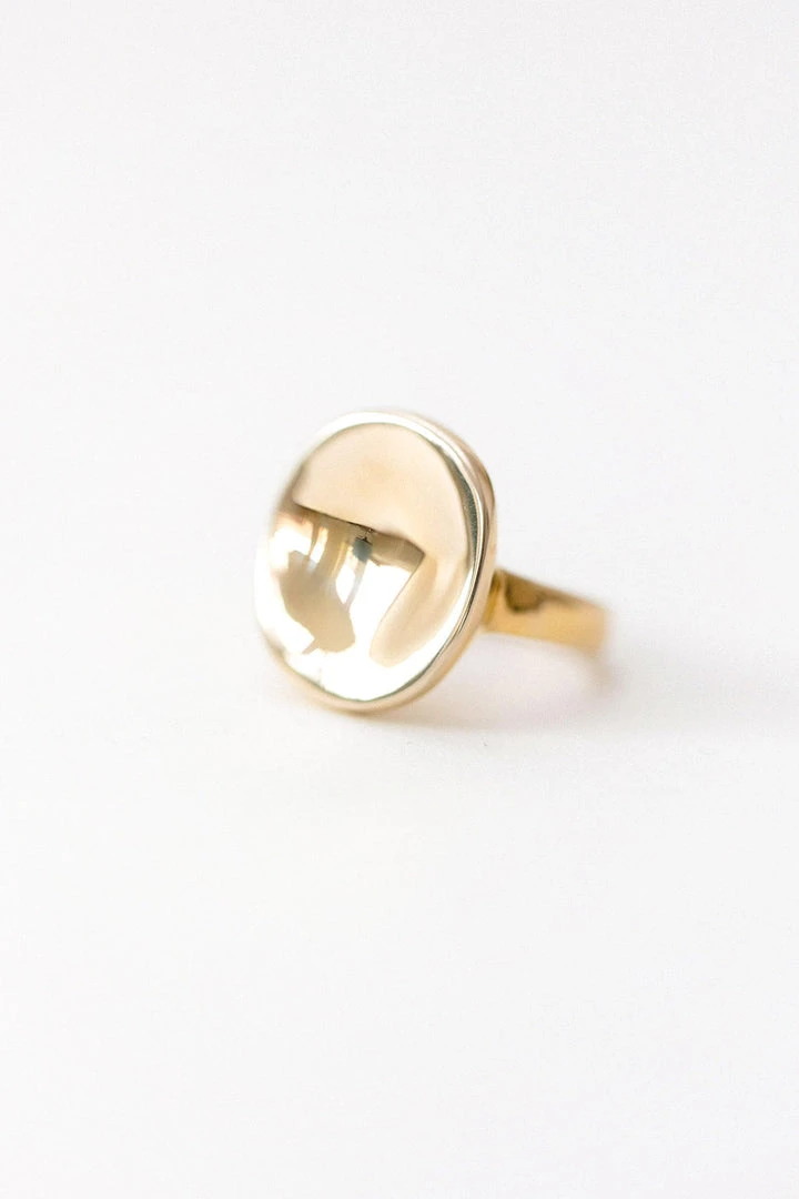 The Sienna Ring in a minimal, versatile ring to be worn alone or stacked with others. This ring adds a glistening, chic touch to any outfit.