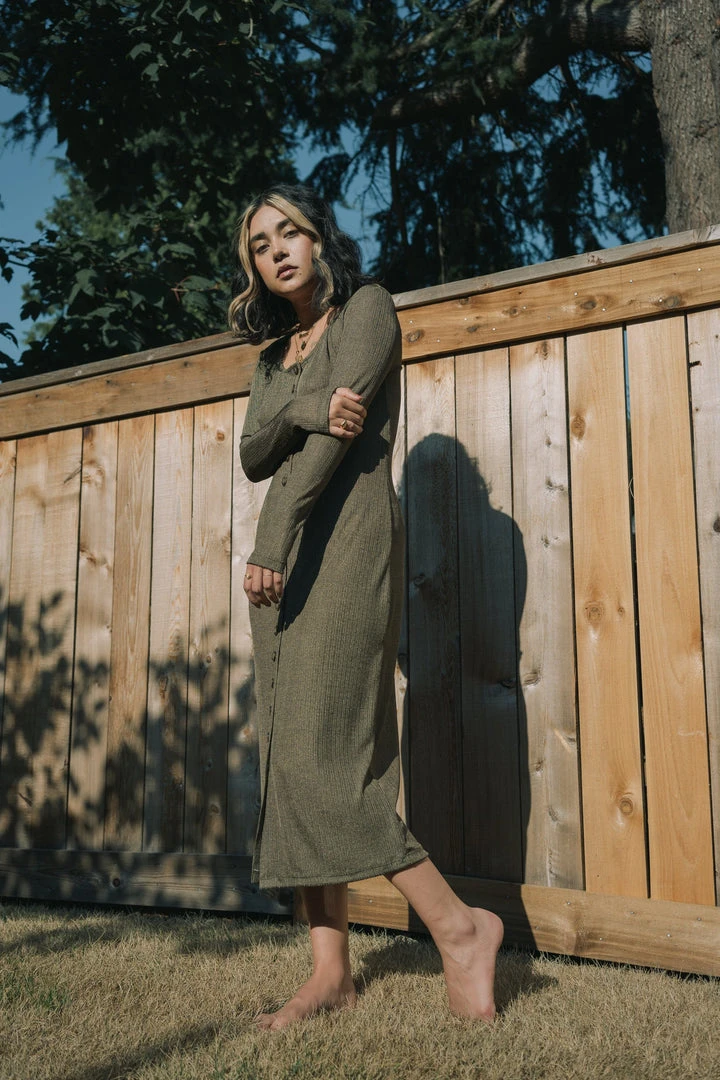 This iridescent, super slinky rib-knit dress drapes beautifully, falling away with a loose, effortless fabric that has incredible stretch and recovery. The Ila dress is a button-down body con dress; wonderful for traveling and dressing for all occasions.