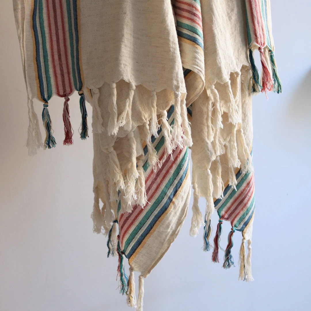 Care: Turkish cotton will get softer and more absorbent the more you use and wash them. We recommend gentle machine washing in warm or cold water with similar colors. Do not use fabric softener or bleach. Avoid washing with zippers and hooks to avoid tangling the tassels.