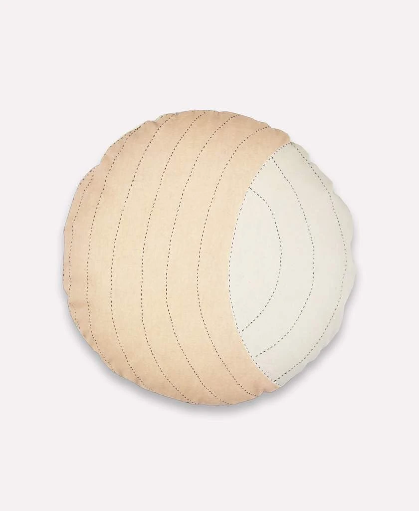 This spherical pillow pairs perfectly with the Crescent Lattice Quilt and is easy to mix and match with the other neutral pillows such as the Eclipse Dot Toss Pillow. Throw one of these round pillows into a pillow arrangement on the bed or sofa to create a contemporary look in any room of the house.