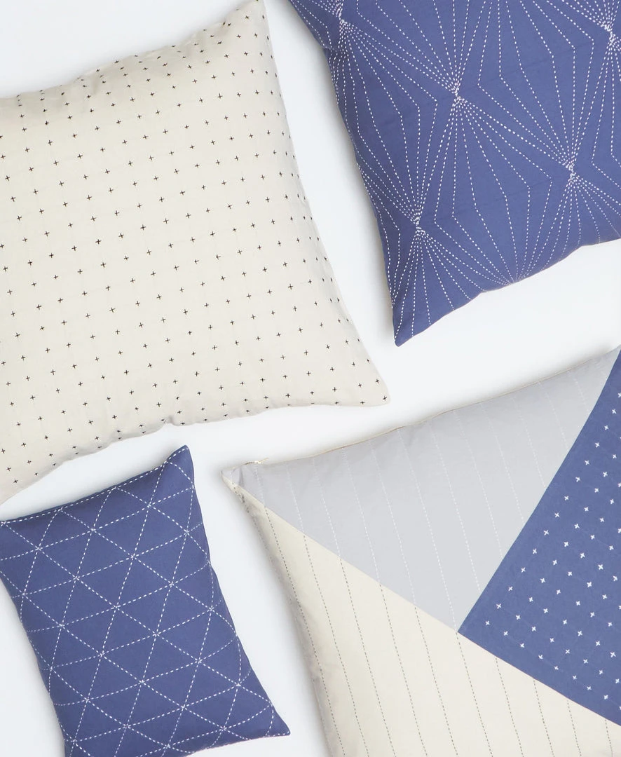 The Didi pillow features vibrant geometric patchwork with contemporary embroidered accents. Color blocks of contrasting patterns make it a vibrant addition to any space. Add a touch of visual luxury to your home decor with this hand-stitched organic cotton pillow. A beautiful companion to the Didi quilted bedspread.