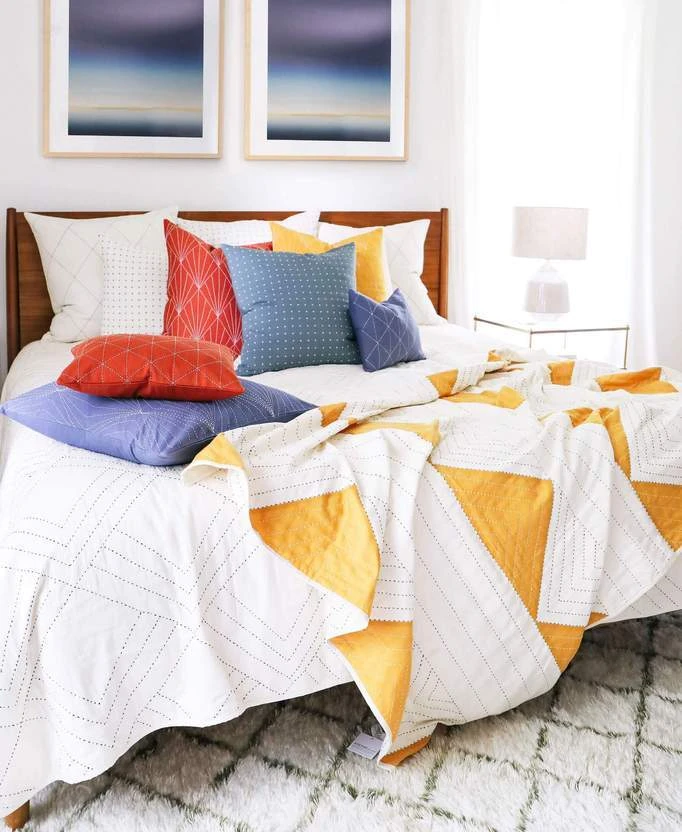 This luxurious cotton bedding features a stunning geometric embroidery pattern. The buttery soft feel of this quilt will add warmth and texture to your bedroom. Drape it on your bed to add artistic, modern flare in your home.