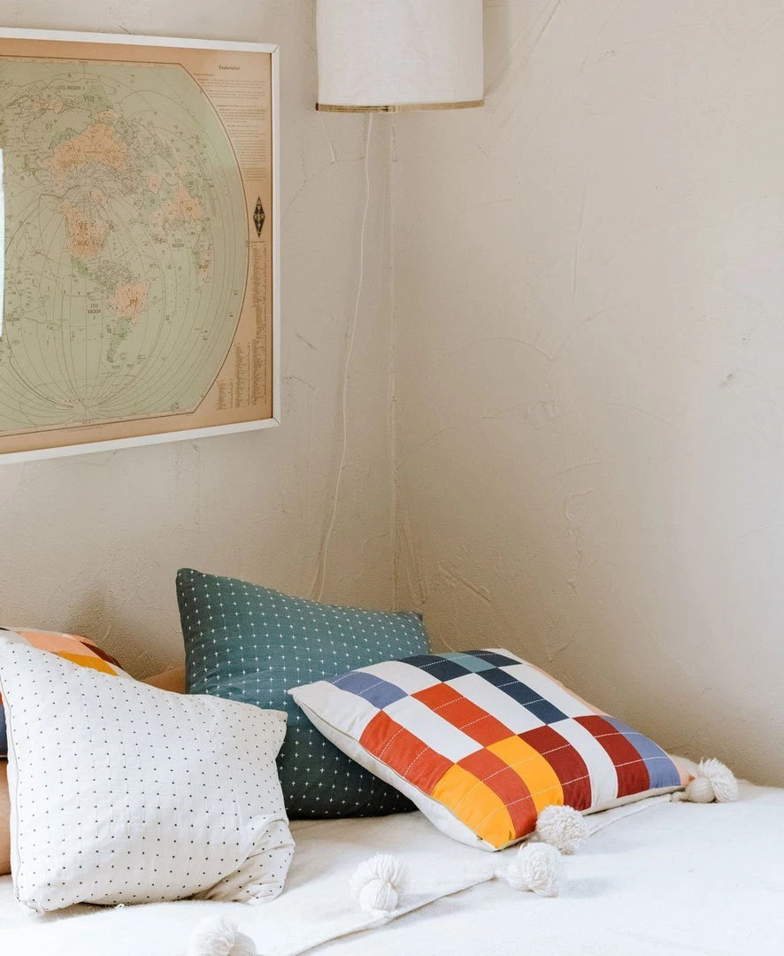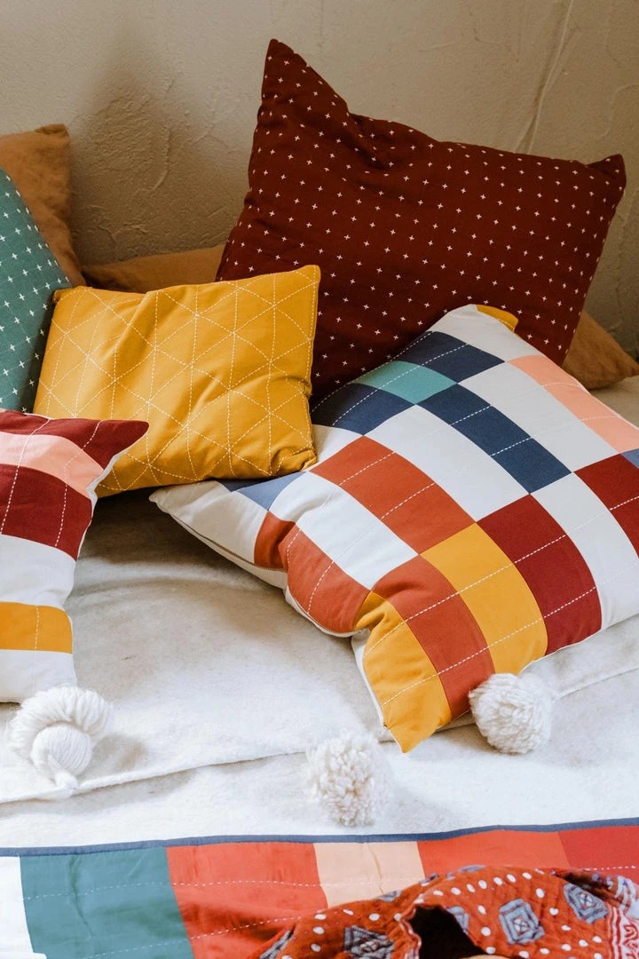 A perfect pair to the Multi Check Quilt, this checkered throw pillow features a vibrant, colorful patchwork pattern ideal for mixing and matching while additional hand-embroidered Kantha stitching lends dimension for an artisanal look. Whether on a sofa or bed, this pillow is sure to liven up any space.