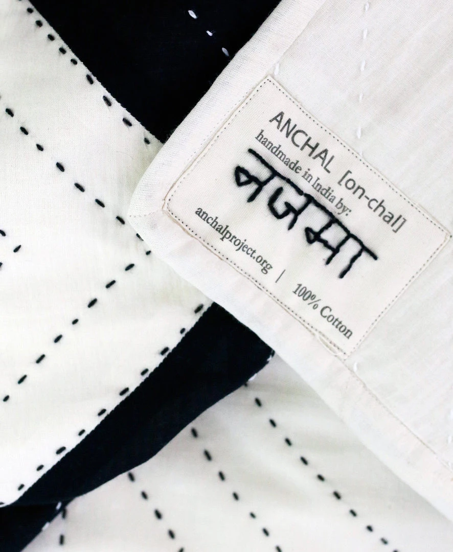 Introduce a feel of modern luxury to your home with the triangle quilted throw in charcoal black. Showcasing the talent of the artisans, the geometric hand stitching lends texture and personality to this statement quilt. Take your home decor to the next level by adding this hand quilted blanket to your bedroom, guest room or living space. The small version is perfect for nurseries and use as a wall hanging.