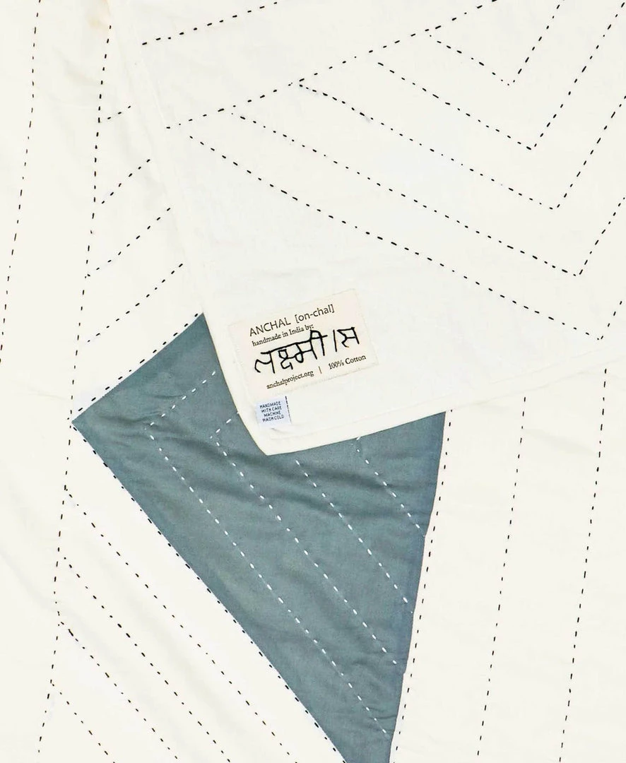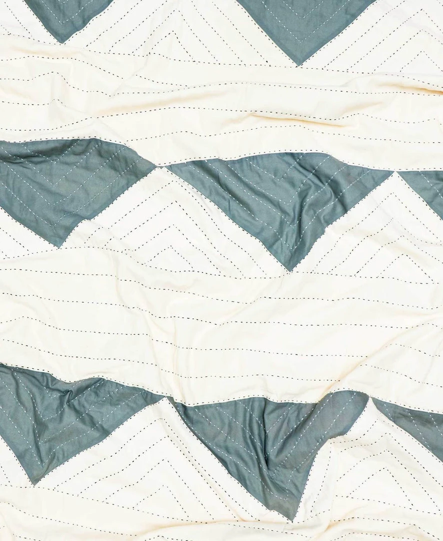 Introduce a feel of modern luxury to your home with the triangle quilted throw in charcoal black. Showcasing the talent of the artisans, the geometric hand stitching lends texture and personality to this statement quilt. Take your home decor to the next level by adding this hand quilted blanket to your bedroom, guest room or living space.