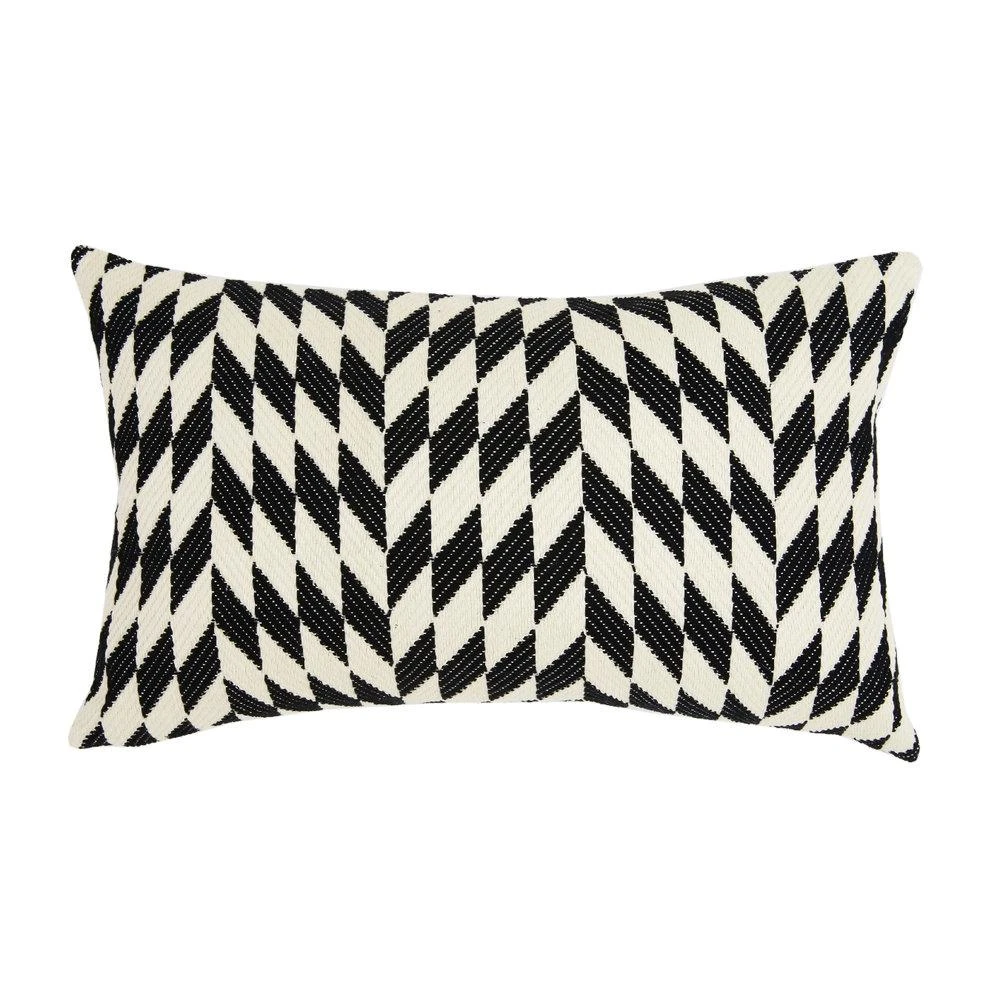This black and white pillow’s pattern is reminiscent of a traditional textile from Almolonga, Guatemala. The cotton used to make this pillow is handwoven by artisans on a back-strap loom.