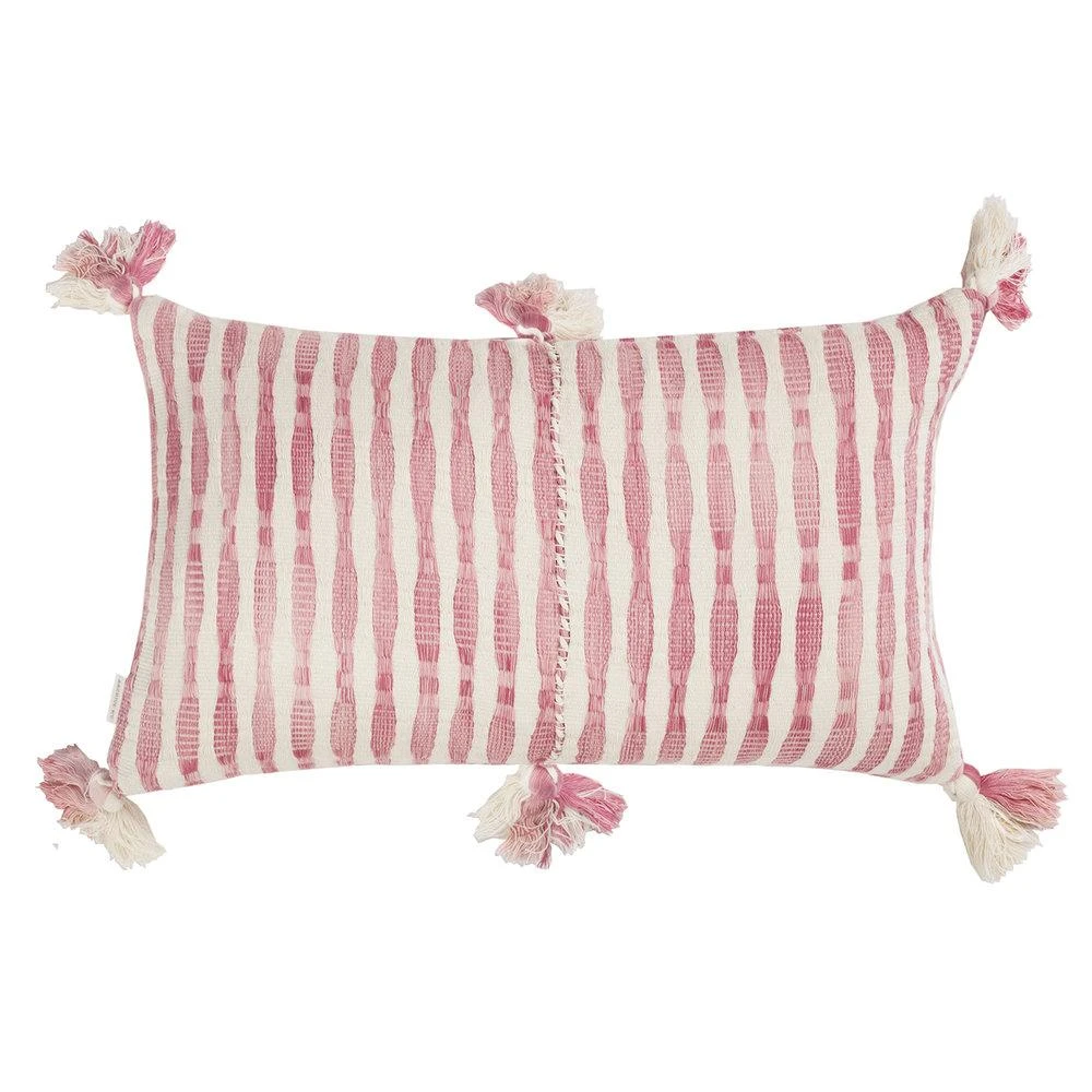 This pink pillow is inspired by traditional textiles from Almolonga, Guatemala. The cotton used to make this pillow was handwoven by artisans using a back-strap loom.