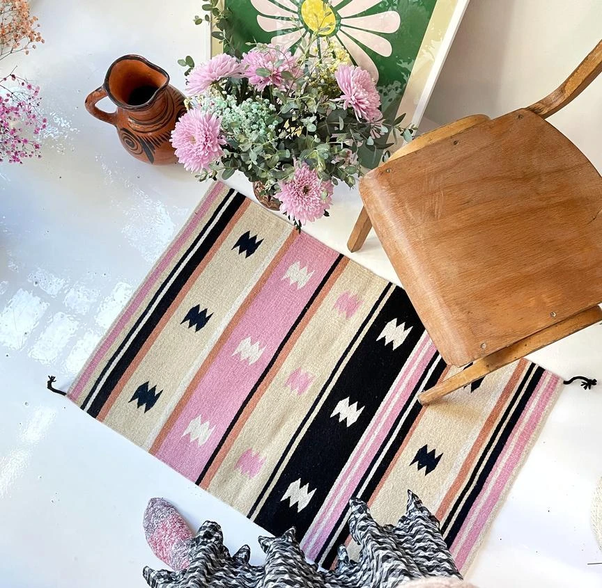 This flat weave, handwoven rug is made in Teotitlán del Valle, a small rug-making town about 40 minutes outside of Oaxaca City, where techniques, foot looms, and the passion for rug-making has been passed down through generations. Each rug is made one by one, woven row by row, with hand-dyed locally grown wool.