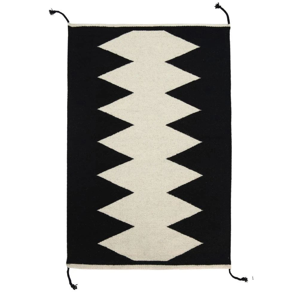 This handwoven rug is a bold graphic statement piece that will pop in any room. Flat woven by artisans in Mexico.