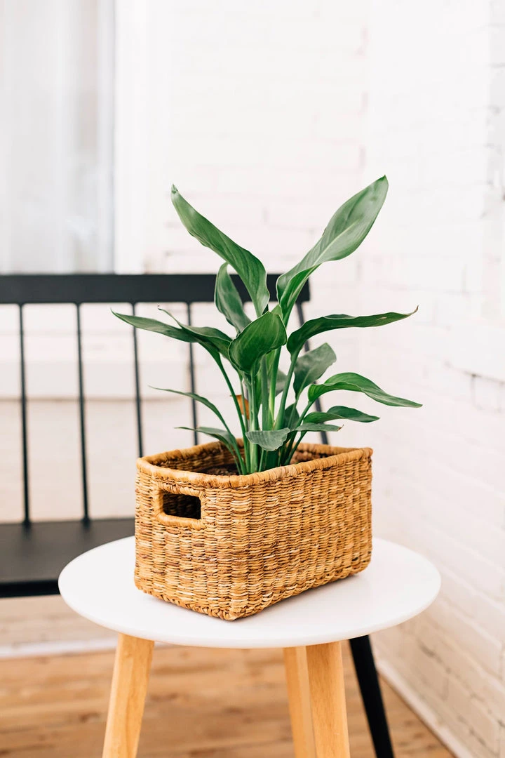 The Banana Twine Demi Panier is wonderful for keeping your shelves neat and your belongings organized. To create this Demi Panier, artisans first harvest dried leaves from the outside of the living banana tree. They then prepare the leaves, twisting them and weaving around a form until the size is just right.