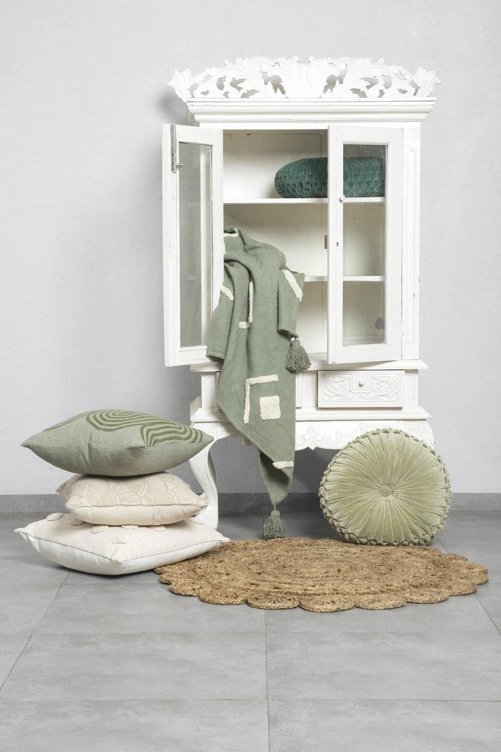 This handmade boho throw blanket features tufted detailing on a soft cotton slub base. Sure to be your favorite to wrap around your shoulders on a cold night. Tassels at the edges bring texture and whimsy to any living space. The result is a delicate, lovely throw with minimal, boho appeal.