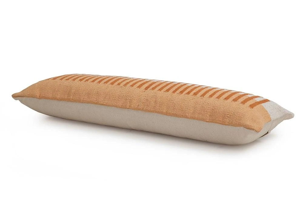 Handmade Orange Stripe Lumbar Pillow takes its inspiration from the colors of the sunset. Handmade by master weavers on panja looms, each and every Stripe Lumbar pillow is ethically made by one of Casa Amarosa’s artisan partners.