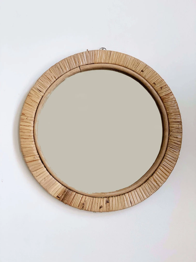 Ceremonia’s full moon mirror is handmade using rattan–a sustainable vine-like tree that grows abundantly from the ground up throughout most of Indonesia. Their artisan partners work with their families to harvest the rattan when it’s ready, then they wash and clean it in the river, and finally smoke it to give it the yellowish/brown hue. Once the material is ready, they burn it at high temperatures to weld into our mirror designs. Due to the handmade nature of this piece and materials used, slight variations may occur.