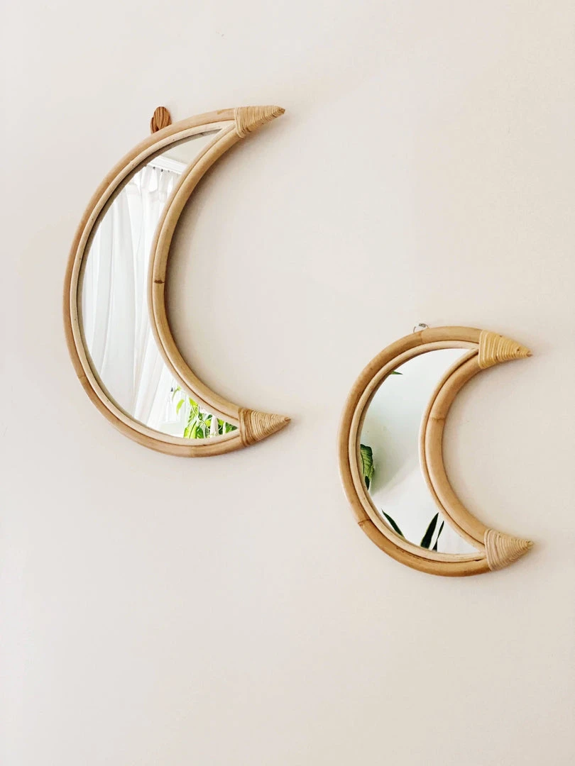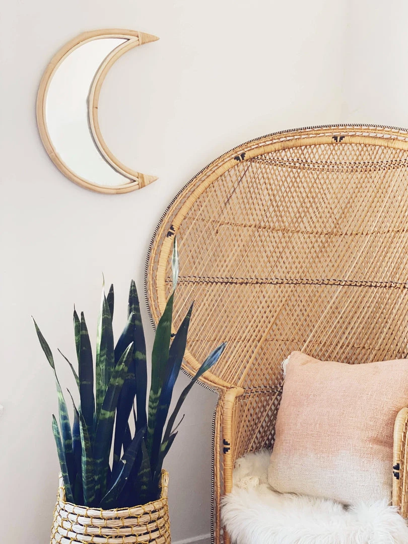 Ceremonia’s new moon mirror is handmade using rattan–a sustainable vine-like tree that grows abundantly from the ground up throughout most of Indonesia. Their artisan partners work with their families to harvest the rattan when it’s ready, then they wash and clean it in the river, and finally smoke it to give it the yellowish/brown hue. Once the material is ready, they burn it at high temperatures to weld into our mirror designs. Due to the handmade nature of this piece and materials used, slight variations may occur.