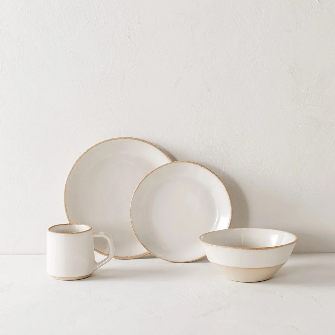 The Minimal Stoneware Dinnerware Set is warm, earthy and timeless. This four piece set includes everything needed for an everyday or special occasion table setting.