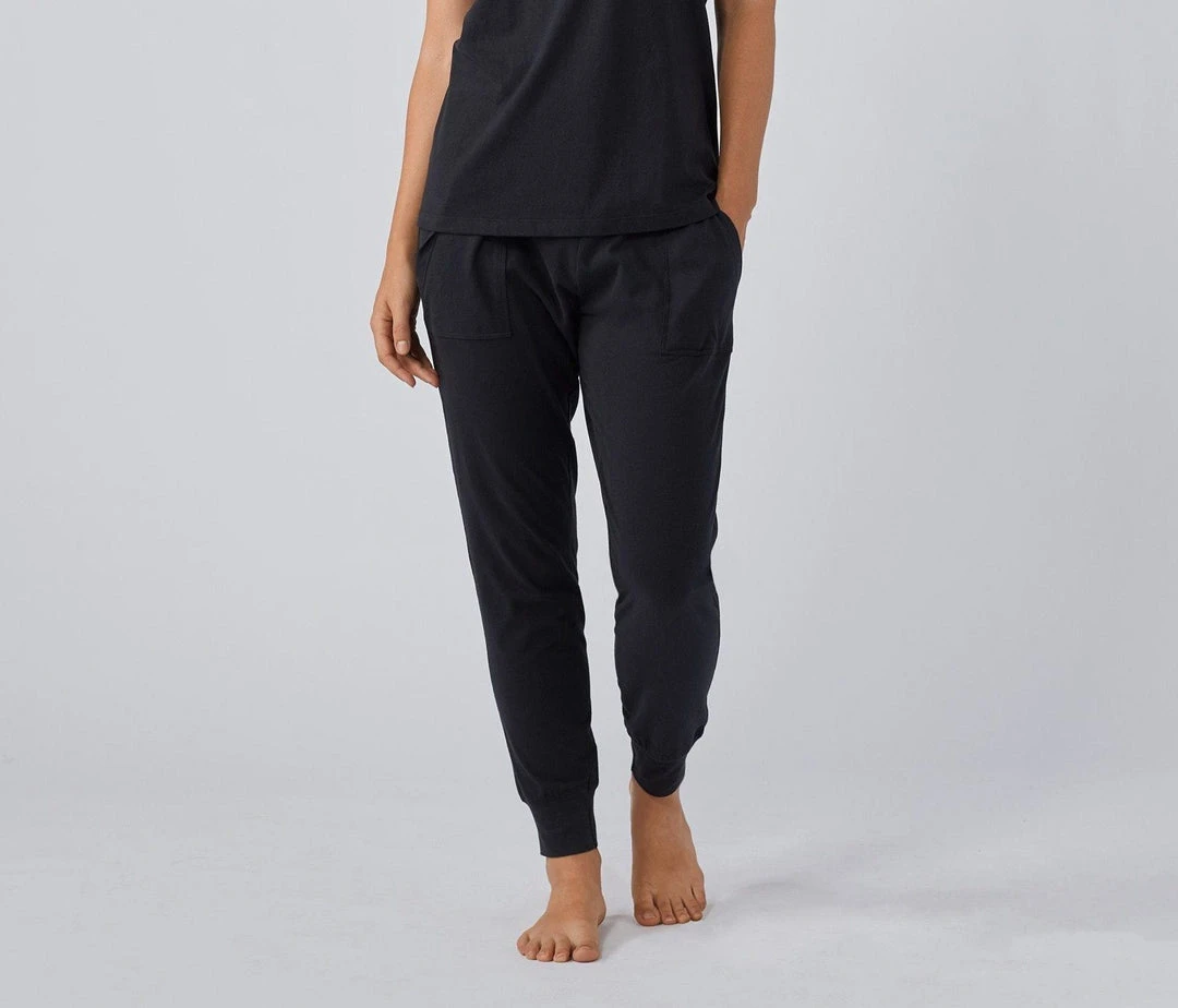 Peached organic cotton jersey makes these joggers feel buttery soft against your skin. The relaxed, mid-rise fit has a wide, flat waistband, large patch pockets, and a slim, fitted silhouette through the leg for easy comfort. Fitted cuffs ensure your joggers stay in place when you’re stretching out or enjoying a cup of tea. 100% cotton means Coyuchi’s signature knit is not blended with materials like lycra/spandex/modal, making each piece last longer — and easier to recycle when that day finally comes.