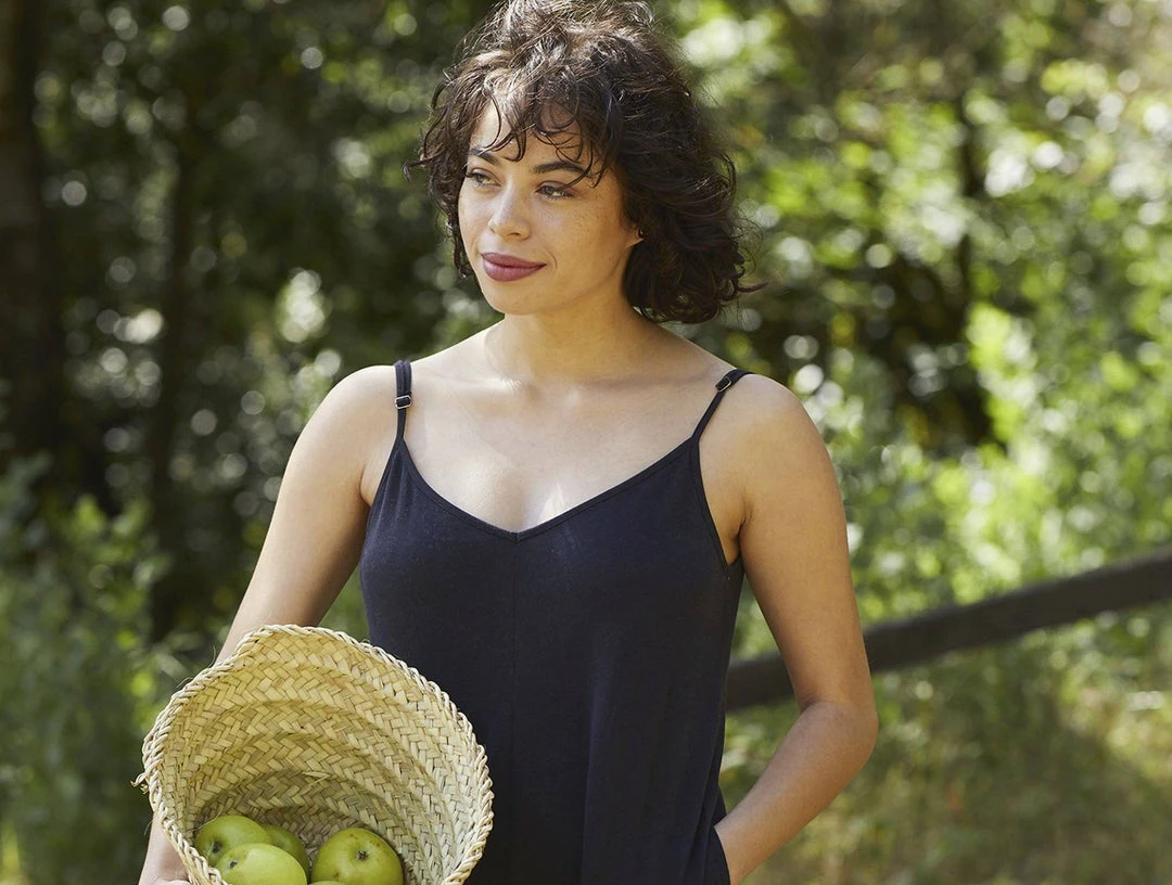 Pure and breathable, the Solstice peached organic cotton jersey feels irresistibly soft against your skin. Ultra-comfy for lounging or sleeping, the romper’s silhouette is flattering for a range of body types, with a wide, cropped leg, adjustable shoulder straps, and a gentle V neck and back. Side pockets are topstitched to stay in place. Made in a factory that recycles 98% of its wastewater.