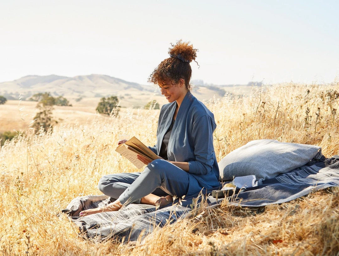 Inspired by the cozy loft that French terry provides, the Dillon collection is loungewear for a little extra warmth. The substantial French terry knit forms a casual, medium-weight cardigan with 1” facing down the open front. Dropped shoulders with 1.75” self cuffs. On seam pockets are stitched into place. Compete the look with the Dillon French Terry Joggers.