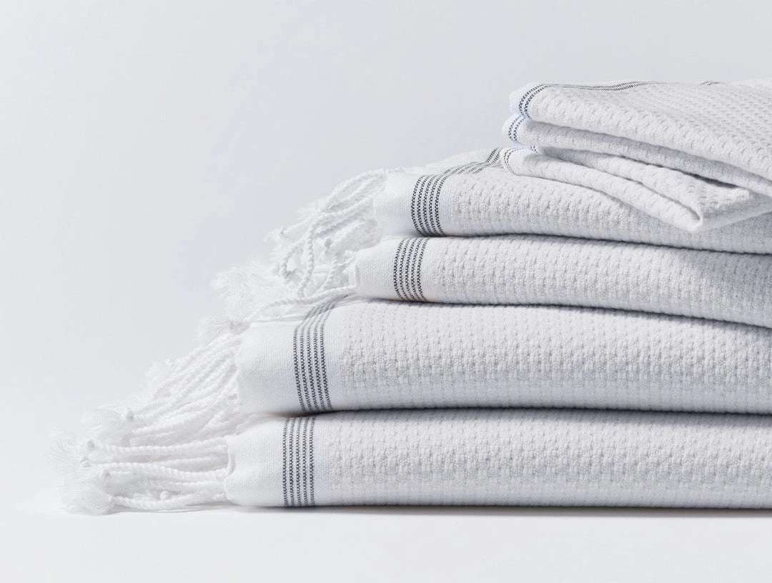 Lighten the load when drying off at home and away with statement-making style and fast-drying innovation. The Mediterranean Collection offers a traditional Turkish flat-weave that’s delightfully lightweight, yet still highly absorbent. Woven from yarn dyed organic cotton and edged in hand-knotted fringe.