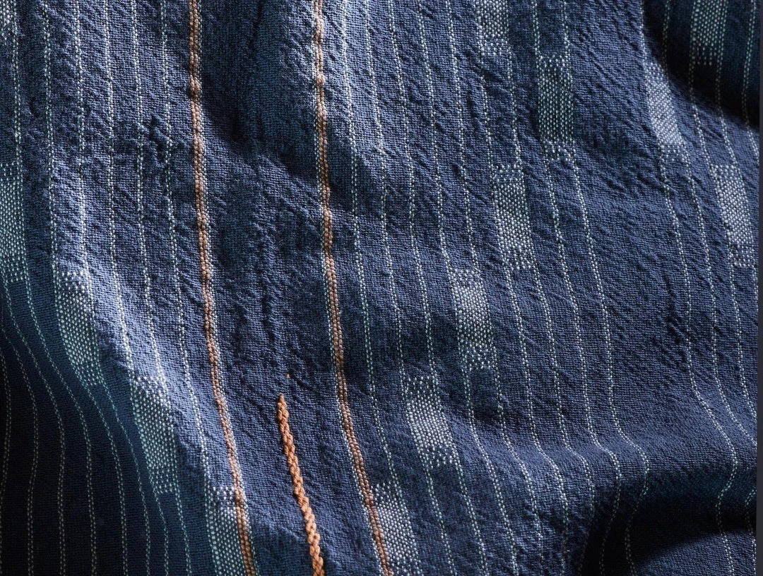 Inspired by a vintage African ikat textile, the Morelia duvet uses yarn-dyed organic cotton in a textural weave to create a pattern of lines, diamonds, and zigzags. Details woven in a heavier weight yarn punctuate the blues and grays with pops of brighter color. Prewashed for a soft, crinkly feel, the duvet is backed with organic cotton percale, so you can use it without a top sheet if you like. Machine Washable.