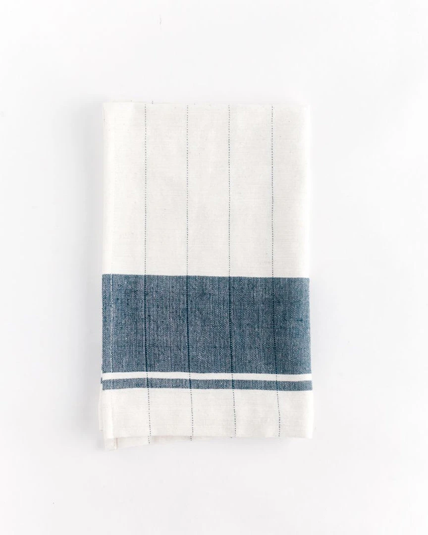 The Chelsea Tea Towel features delicate pinstripes to add a new dimension to a classic striped design. These towels are made with the finest hand-spun and handwoven Ethiopian cotton for a uniquely rich texture that will continue to soften and become more absorbent with each wash/dry.Â