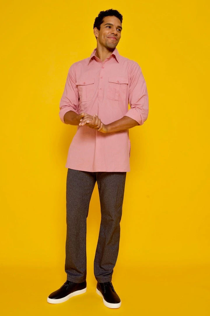 The Kameez is a long, tunic style shirt with military chest pockets for an elevate take on a utility shirt.Â