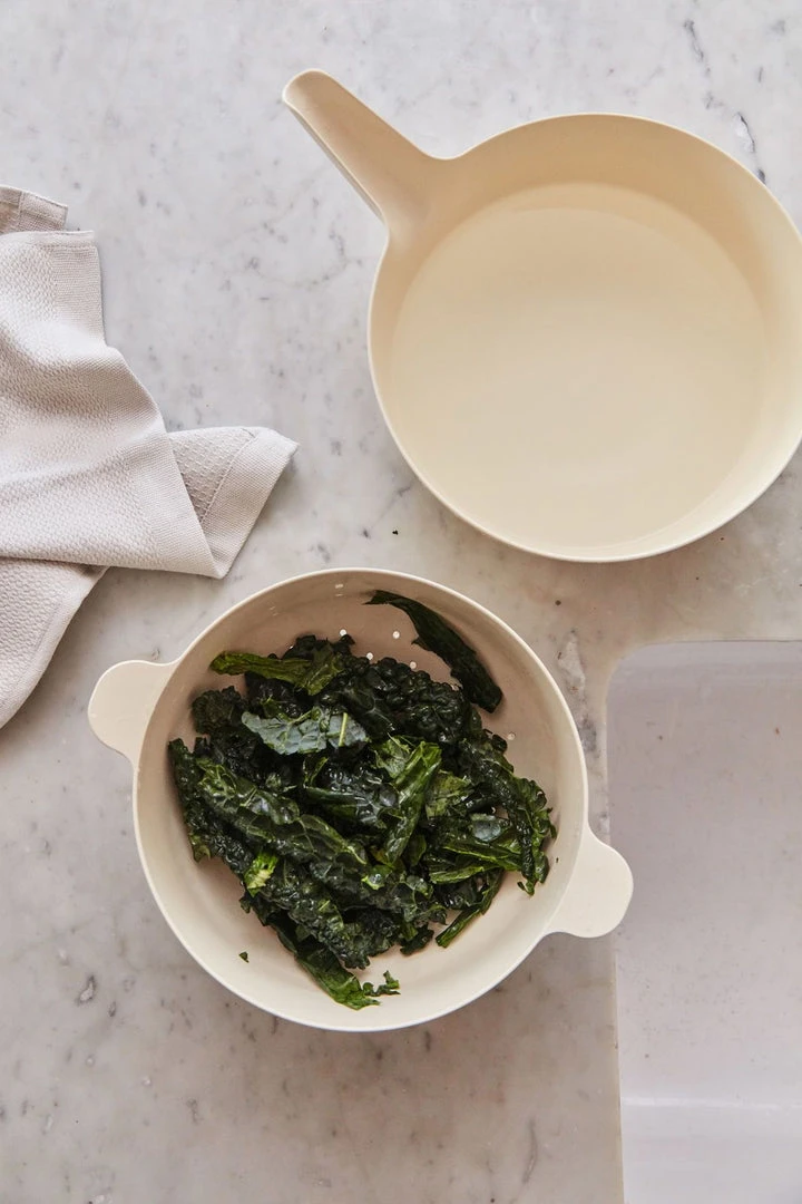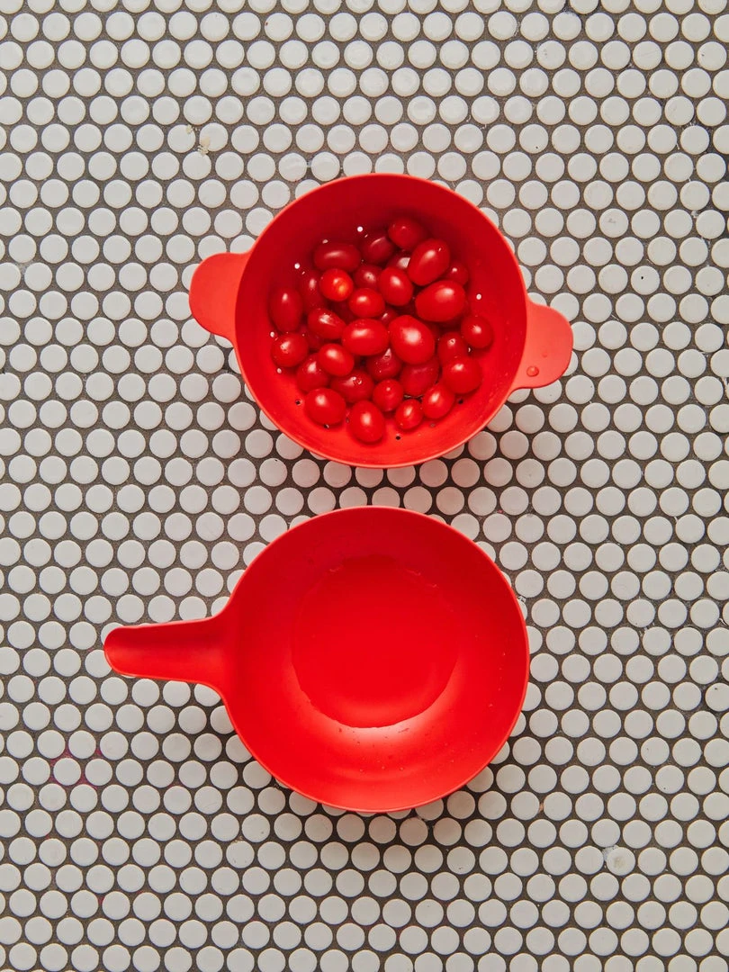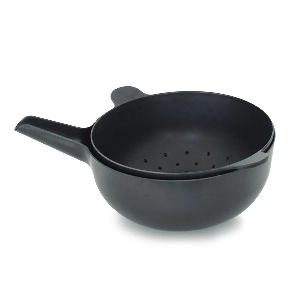 This mixing bowl and colander set is a multi-purpose solution for any kitchen. It is ease to stack and store. Its handle doubles as a spout for pouring. With a sleek design it is easy to bring it straight from the kitchen to the table.