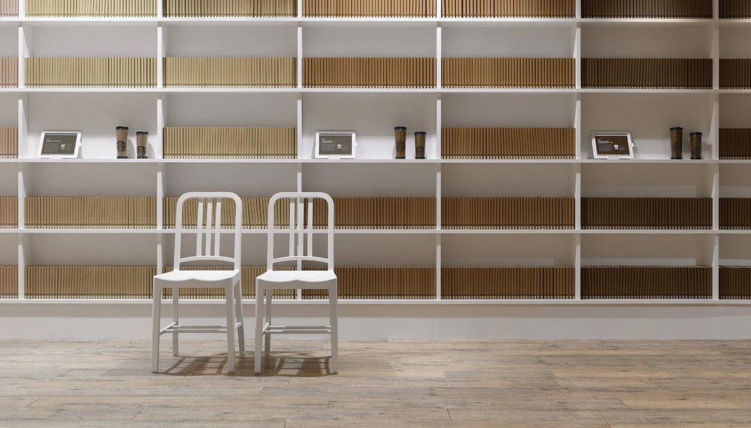 Coca-Cola and Emeco collaborated to solve an environmental problem: Up-cycling consumer waste into a sustainable, timeless, classic chair. Made of 111 recycled PET bottles, the 111 Navy Chair is a story of innovation.