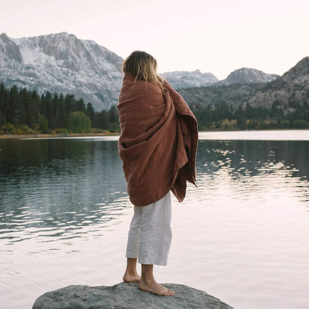 The Daybreak Hemp Quilt was dreamt up as a companion for morning coffee on the porch and happy hour coziness on the sofa. These quilted blankets are crafted in the ideal antimicrobial and moisture wicking hemp fabric with a variegated and intersecting pattern for an extra-textured blanket. The size and weight make it work on any size bed and as the perfect sofa or travel companion.