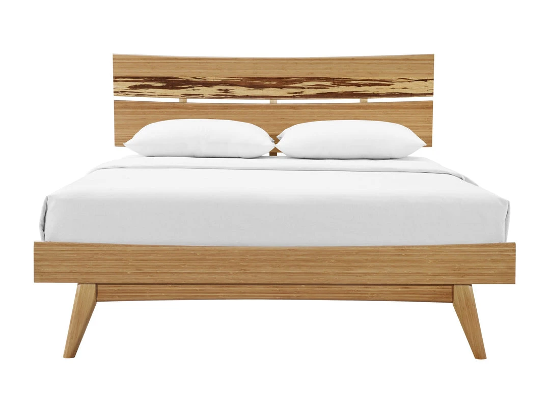 Showcasing the beautiful color and grain of solid bamboo, the Azara platform bed features contemporary styling, clean lines and a stunning headboard accent in exotic tiger bamboo. The Azara platform bed is designed for use with a mattress only, which is supported with a solid bamboo European slat system, eliminates the need for a box spring, and provides constant ventilation for your mattress. Available in Queen, King, and California king sizes, in your choice of caramelized or rich Sable finish. Crafted in solid Moso bamboo, the Azara’s elegant silhouette creates a timeless look to complement any style.