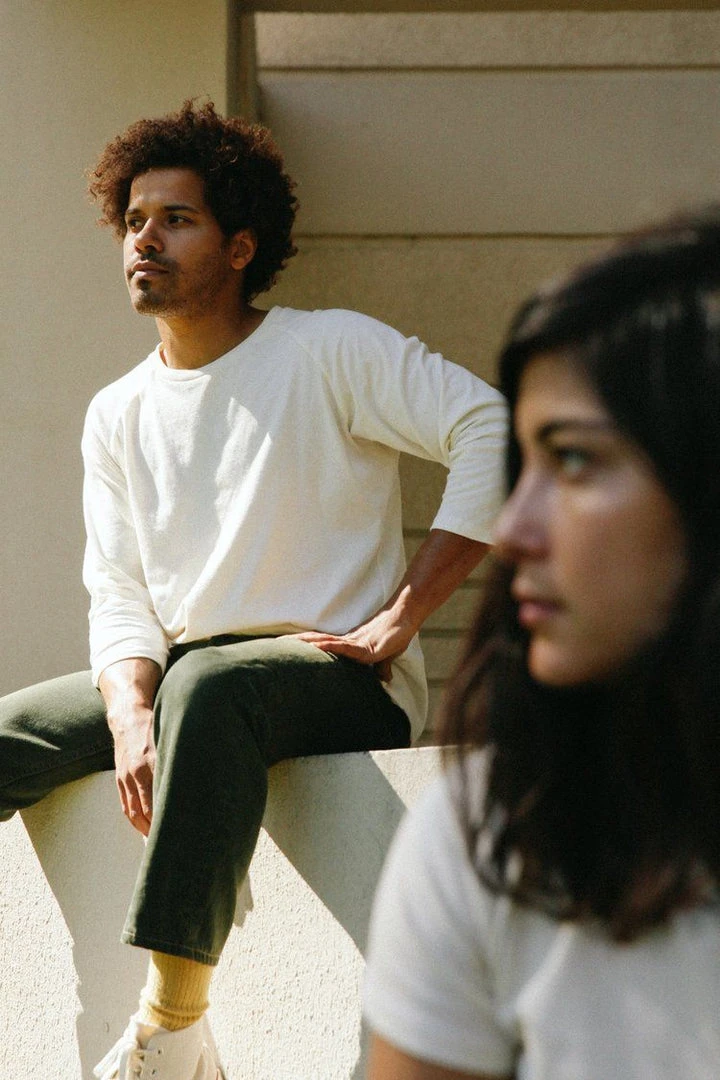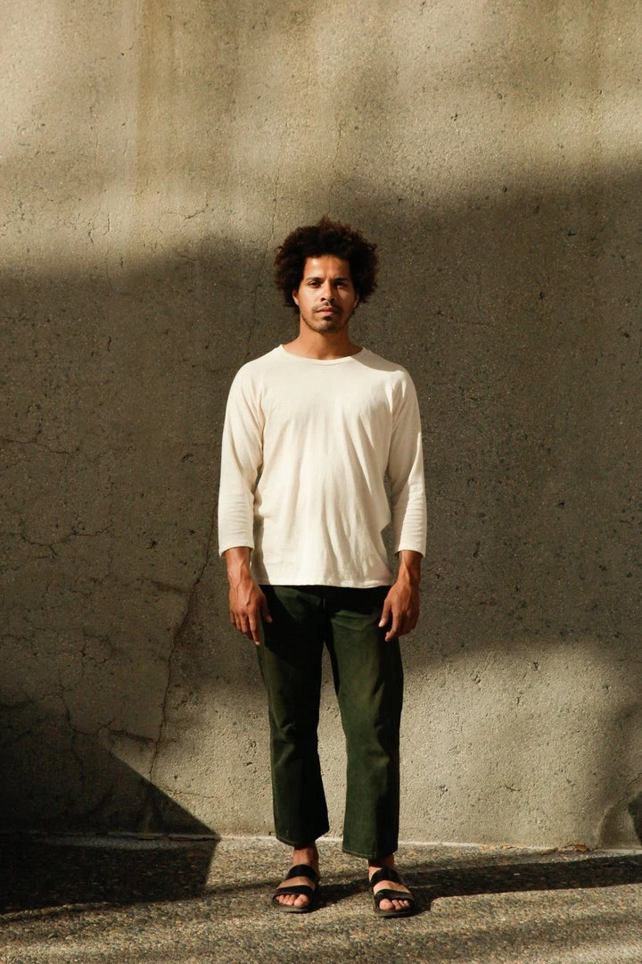 This is a roomy and relaxed cropped sleeve raglan. Features super soft, smooth woven cotton. Made to fit oversized, size down for a tighter fit. The cotton used to make this tee is organically grown in the USA, spun and knit in the Carolinas, and sewn in the San Francisco Bay Area.