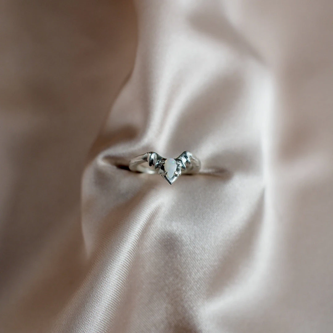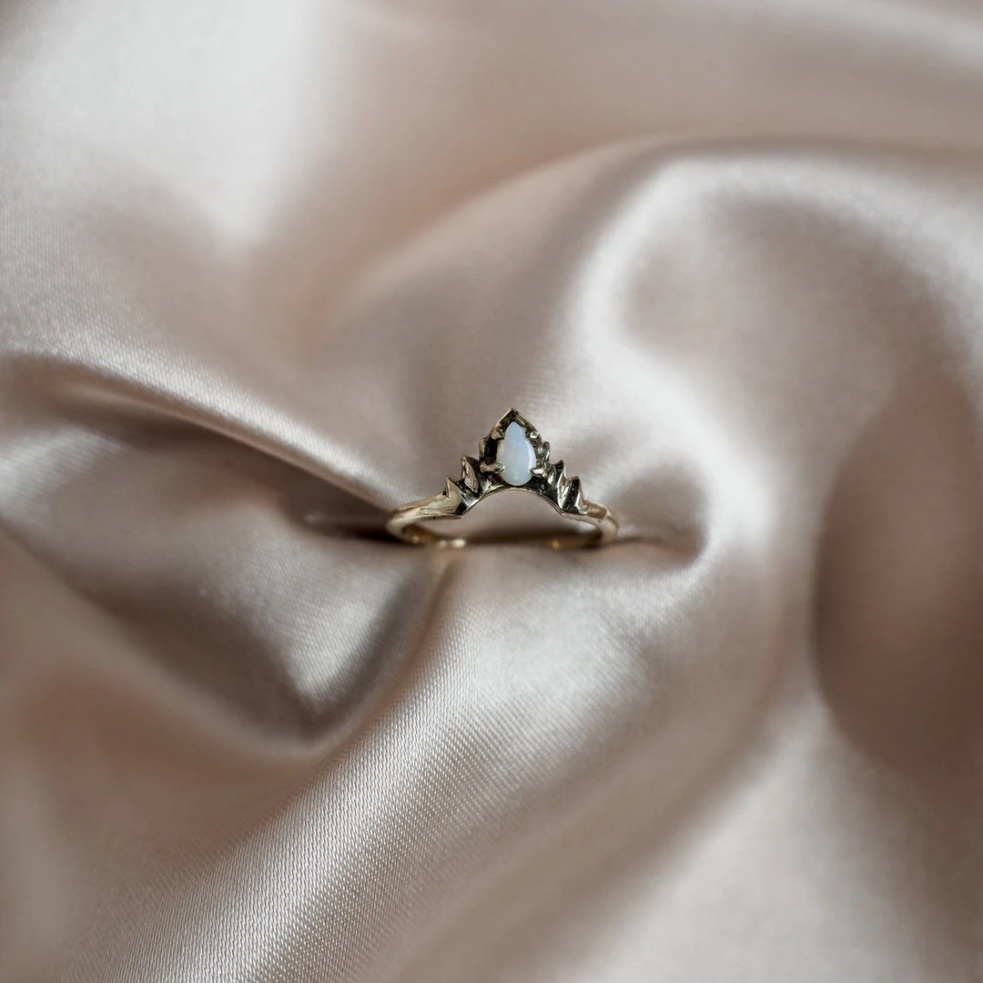This delicate ring is meant to be worn with another ring to create an elegant stacked look. Stack the Halo Ring with the corresponding Oval Opal Ring for a classic, perfectly nested set, or stack it with a ring you already have. It also creates a lovely shape on its own. Learn more about lab-grown gemstones on Made Trade Magazine.