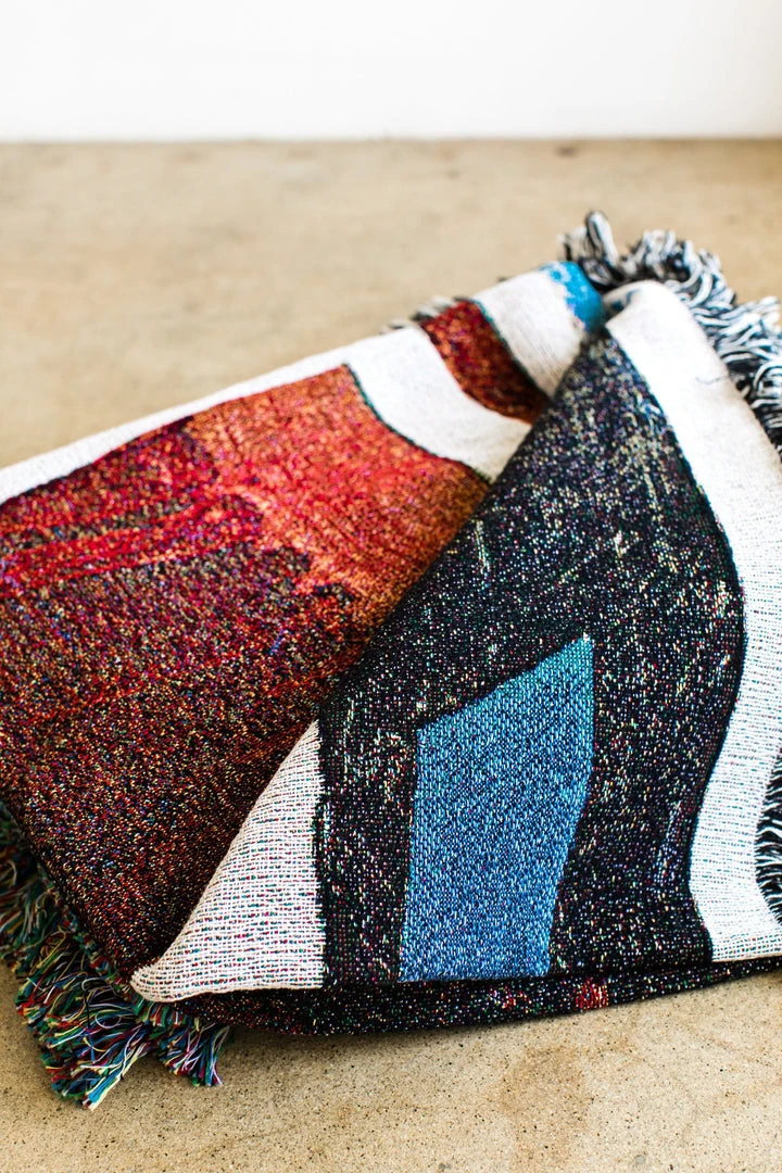 This cozy blanket has a soft and luxurious feel. The Esther Throw’s design is based on an original painting by Los Angeles based artist, K’era Morgan. The heavy Jacquard weave blanket is made to order to reduce waste. Cuddle up with a piece of art.