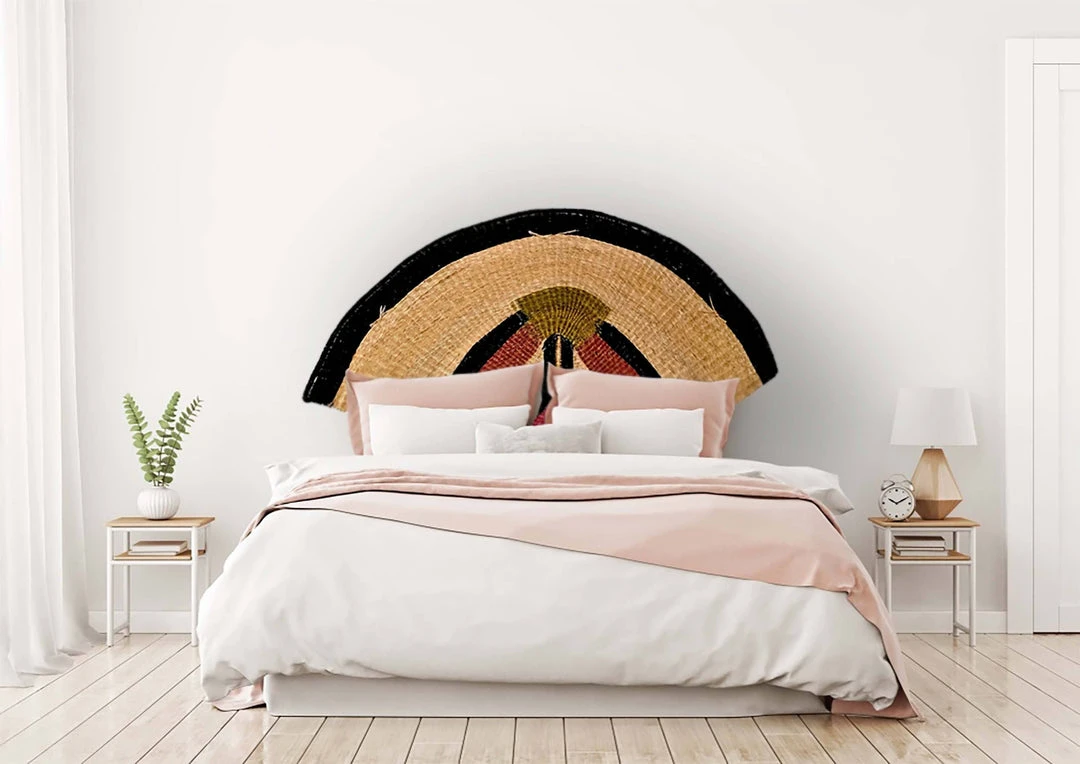 Whether you use it as a headboard, art piece or selfie spot, this headboard is a major standout. Mount it behind your bed or use it to frame your space with a true statement piece. The headboard has hand-stitched loops on the back for hanging. Some people fine-tune with additional nails, pins or hooks.