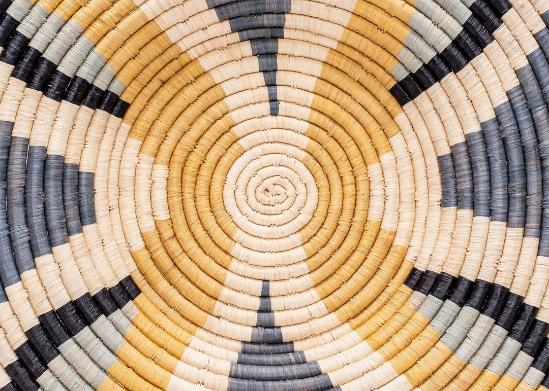 The Large Opal Gray and Mustard Tabia Plate will add a pop of color and texture while making a bold statement. Style is alone for a dramatic, yet simple, look, or style it with other wall plates and bowls for a dynamic display.