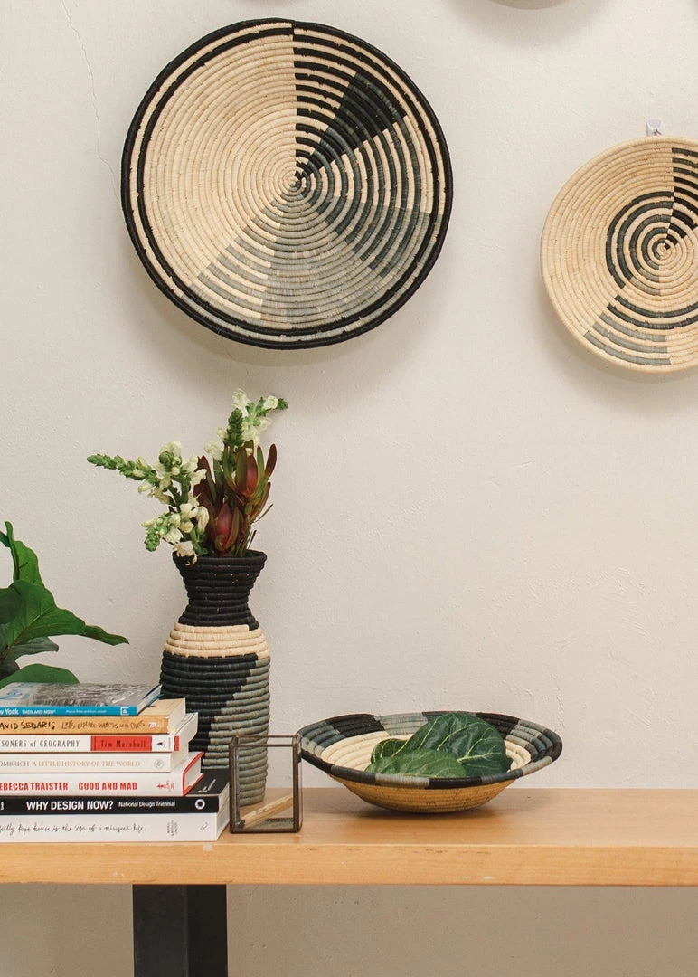 Intricately crafted with timeless tradition, this carefully dyed raffia fiber and sweet grass vase makes a stunning statement piece. One or more of these vases, will make a globally conscious and stylistic addition to your home. All products are made by hand with love and vary slightly in color and size.