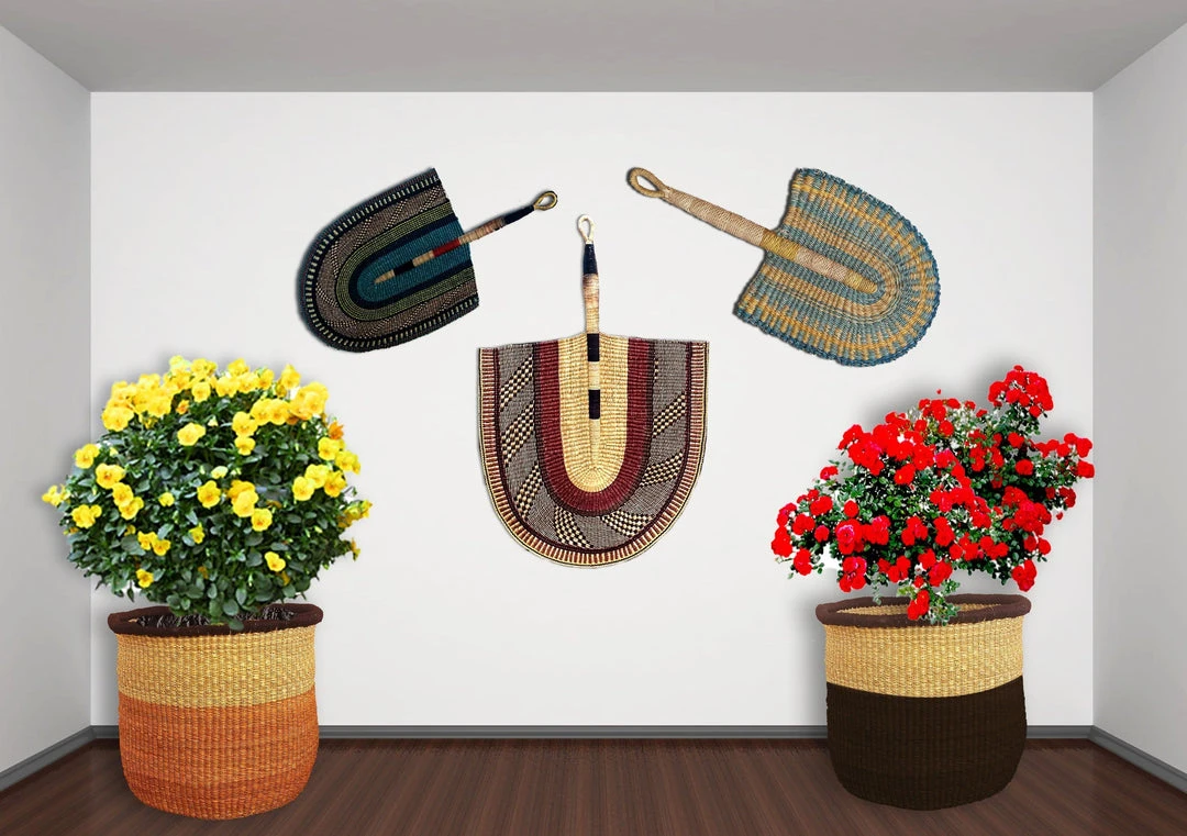 Style this Small Sky Blue & Sun Fan on a wall either alone for a minimalist look, or with other wall art for a dynamic look. Try it on a bookshelf to create a textured display. Includes a leather handle.