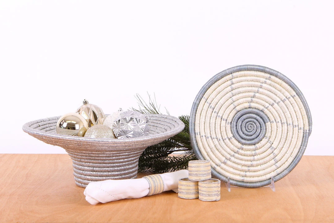 Made only in an ethical, fair trade environment. These delicately textured and handcrafted trivets were made by groups of women in intimate communities across Rwanda. They use the sisal agave plant and sweet grass to weave them together.