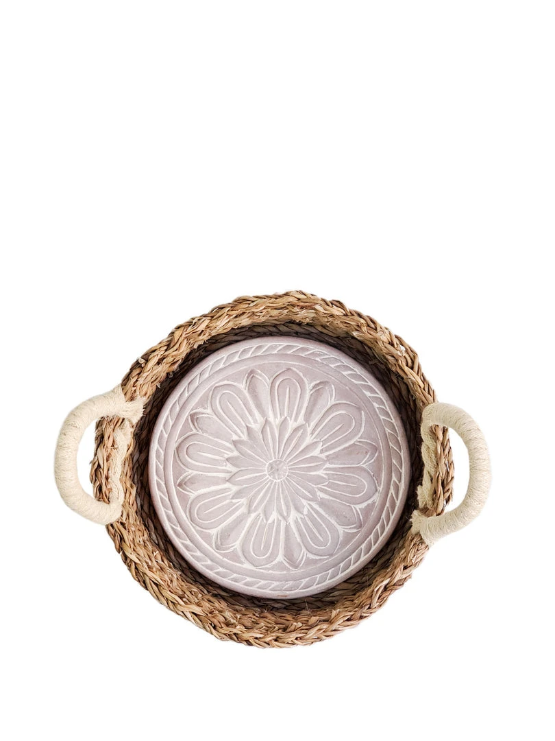 There’s nothing quite like the smell of warm bread on the weekend. Here, a terracotta plate has been engraved with a vintage flower design and cut to fit neatly into a round basket. This special bread warmer is naturally insulating, and the basket itself has been handwoven from sustainably grown seagrass. Variation is celebrated with handcrafted products.