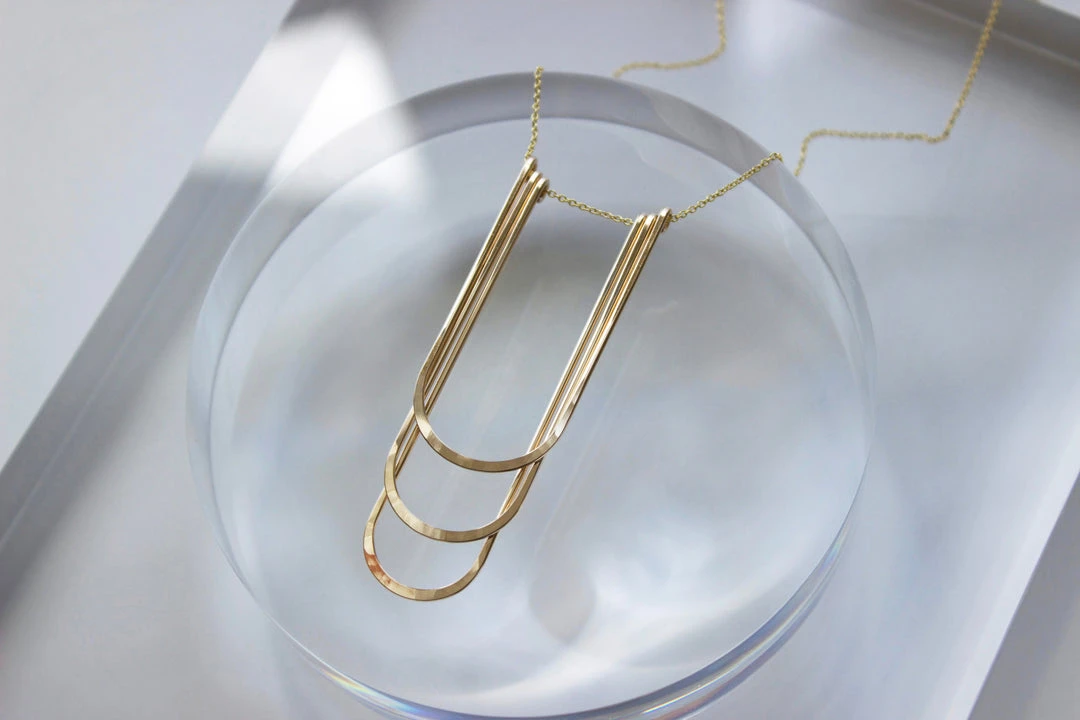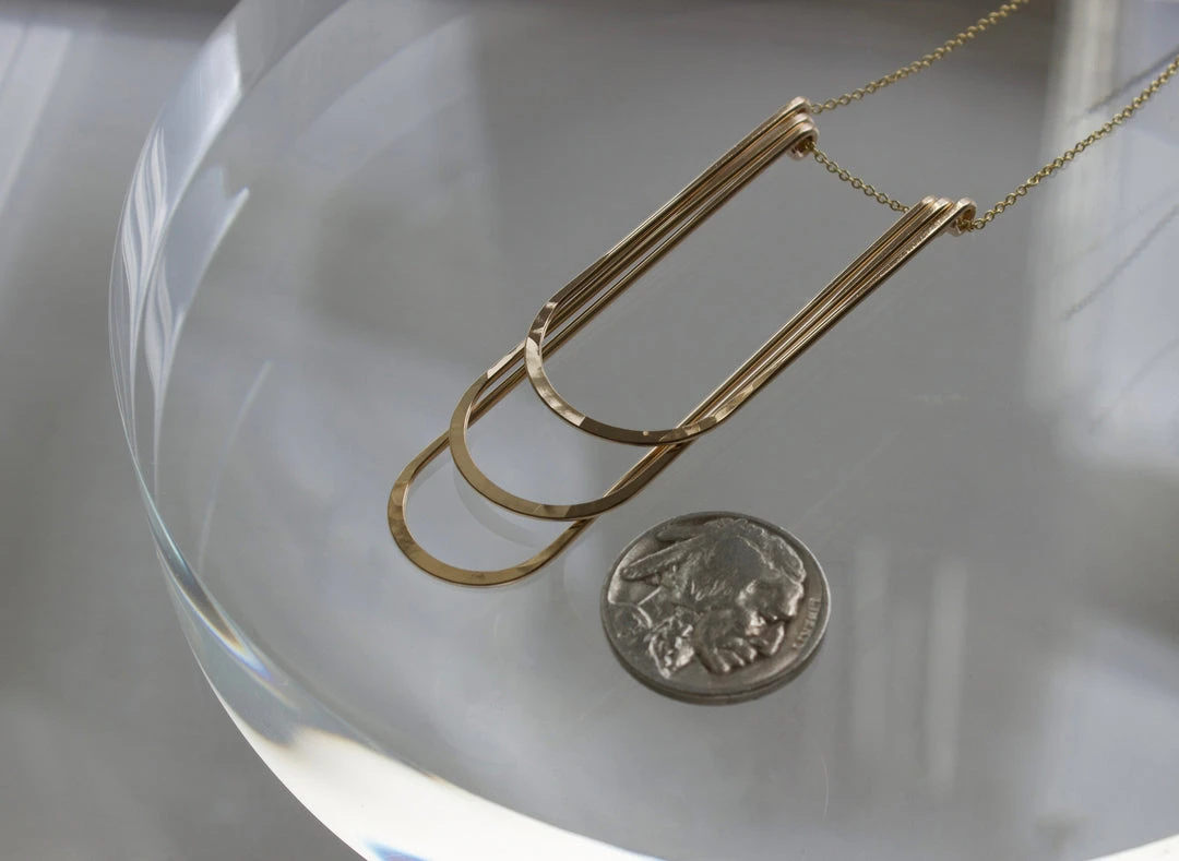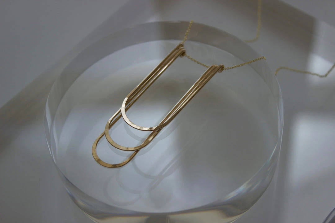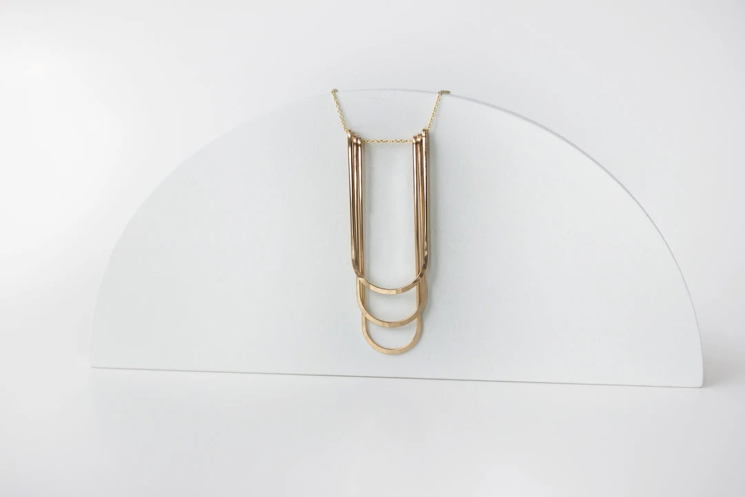 This unique, minimal necklace is a simple statement piece. Perfect to dress up for a night out or paired with a t-shirt and jeans. It is versatile and classic.