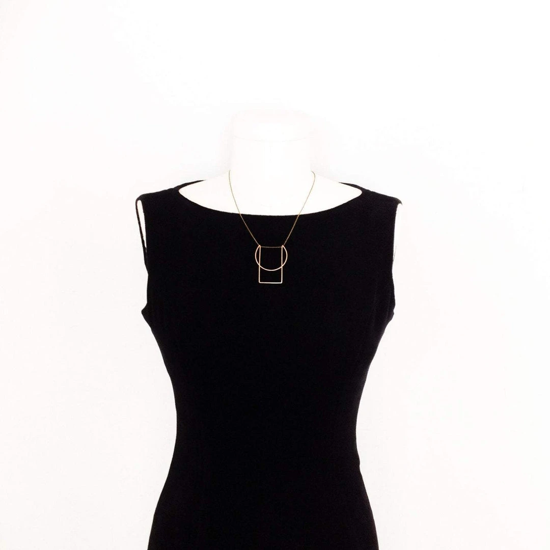 This simple, geometric necklace will add interest to any outfit. Featuring modern, playful shapes, it will quickly become your favorite statement piece.