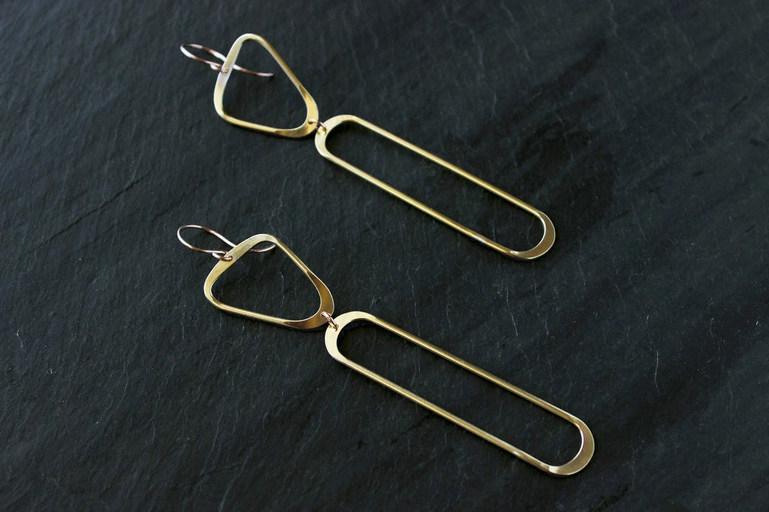 These architectural statement earrings are sculpted and carved in wax by hand, then cast. Easily dressed up for a night out or worn with a t-shirt and jeans to add shine to a casual look. These shapes are free formed and may vary subtly.