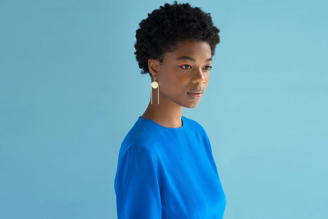 These architectural statement earrings are sculpted and carved in wax by hand, then cast in bronze. Easily dressed up for a night out or worn with a t-shirt and jeans to add shine to a casual look.
