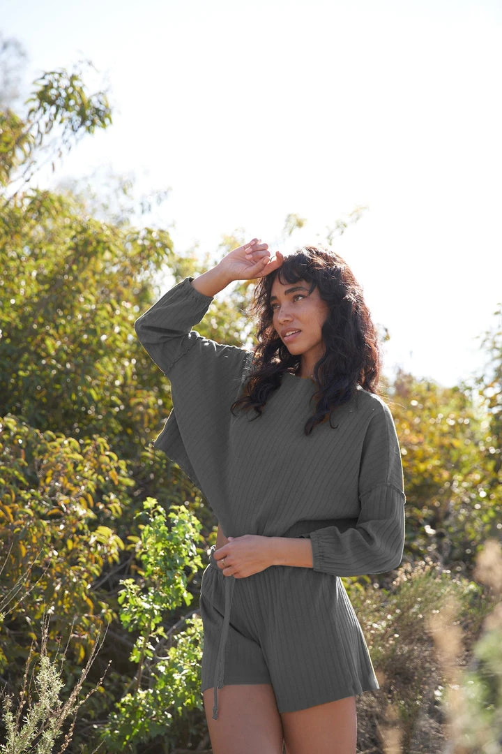 The Pointelle flutter short is cut loose around the leg opening for a relaxed and fluttery fit. It features a paperbag waist and ultra comfortable elastic. The subtle pointelle jacquard is a sweet update to this classic heritage fabric. Each item is garment dyed in small batches for a dreamy, soft-focus effect.