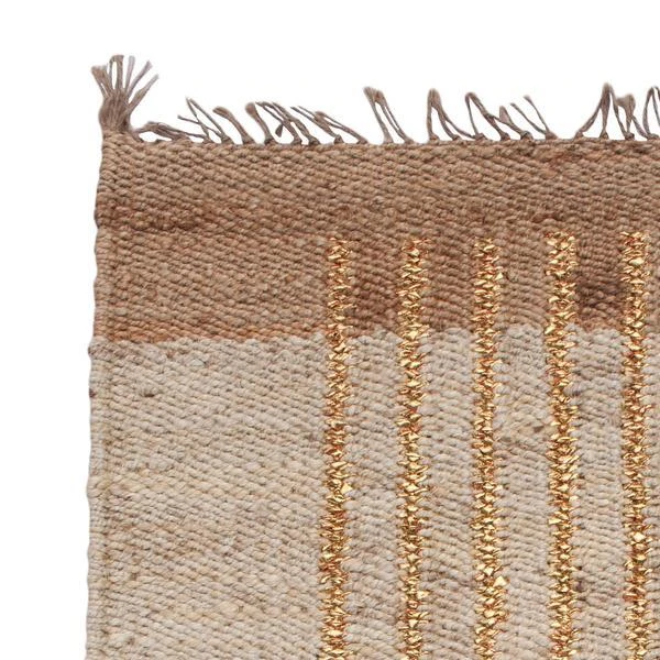 This modern area rug has been ethically handwoven in the finest jute yarns by artisans in Rajasthan, India, using a traditional weaving technique that is native to this region. The purchase of this handcrafted rug helps to support the artisans and preserve their craft.