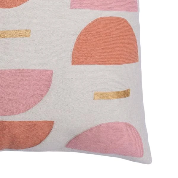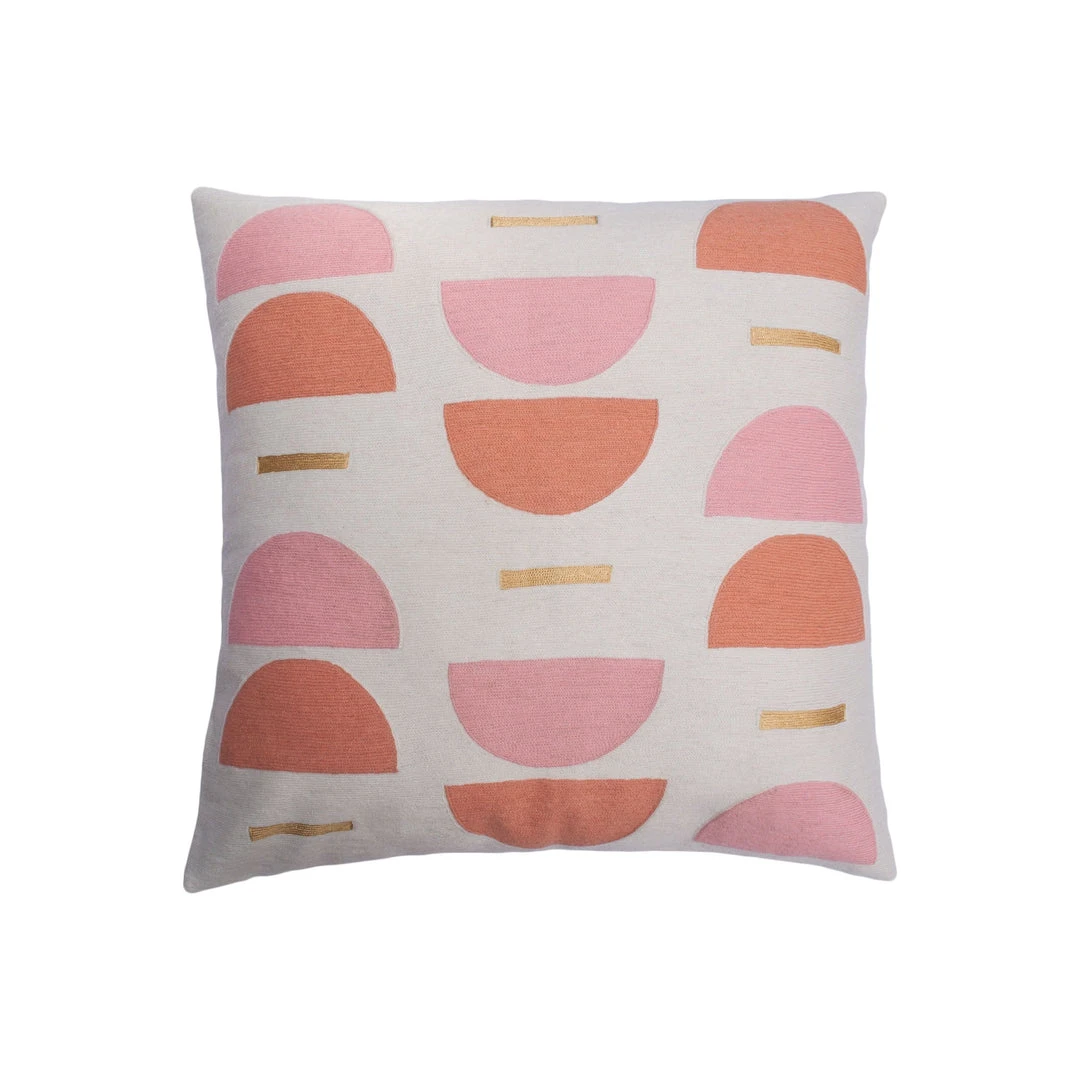 These geometric throw pillows have been ethically hand embroidered by artisans in Kashmir, India, using a traditional embroidery technique which is native to this region. The purchase of this handcrafted pillow helps to support the artisans and preserve their craft. Each piece may vary slightly due to the nature of handcrafted goods.