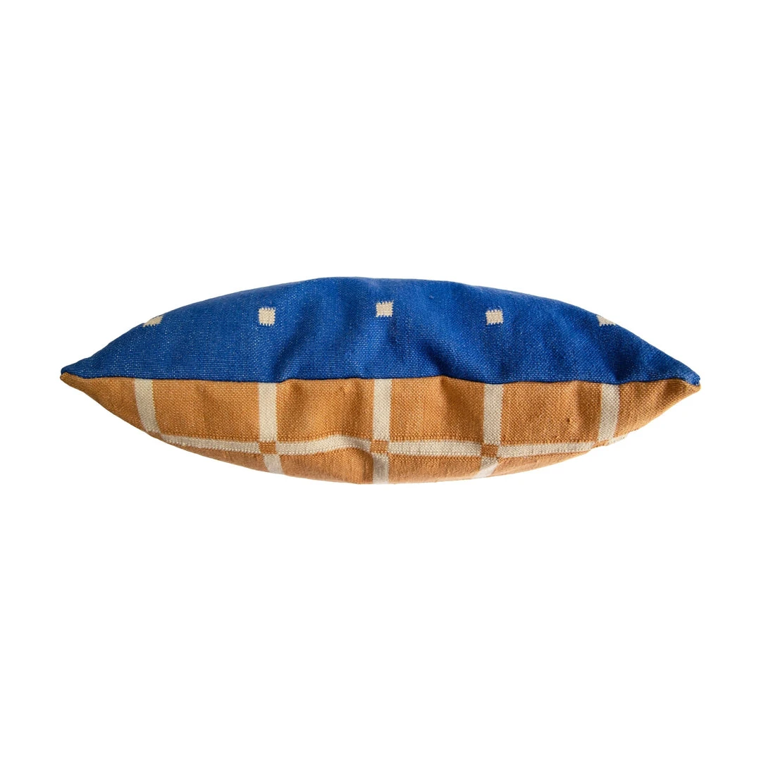 The Grid Reversible Throw Pillow is a modern geometric throw pillow cover that adds a pop of color and energy to your space. This handcrafted pillow is reversible, giving you two styles in one for dynamic home decor. The grid pillows are ethically hand woven by artisans in Rajasthan, India, using a traditional weaving technique which is native to this region. Each piece may vary slightly due to the nature of handcrafted goods.