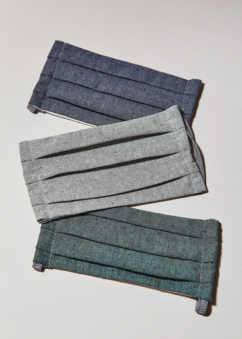 We chose form-fitting, expandable pleats for the widest amount of coverage, and comfortable elastic that helps the mask stay in place all day long. Pleats allow for the most coverage from the space below your chin up to the bridge of your nose. And strong elastic ear loops retain their stretch wear after wear. When you first try on your face mask you’ll notice the pleats are quite crisp. People with smaller faces may notice the sides of the face mask may be slightly raised or puckered out. If this is the case, and to ensure your mask is form-fitting, we recommend following the care instructions below and washing and drying your mask before wearing. After washing and drying, the pleats will significantly relax and the face mask will better form to your face.