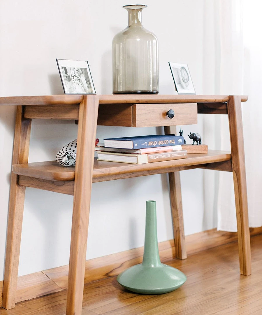 Masaya & Co.’s Apanas Hall Table is a mid-century modern style accent table handmade from sustainably sourced tropical hardwood. It is perfect for entryways, living rooms, bedrooms, dining rooms, or any area suited for an accent table. It also can make a gorgeous TV stand, with a drawer for remotes or other items.